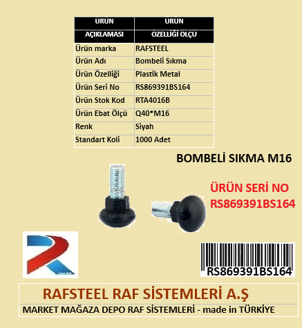 BOMBELİ SIKMA RAFSTEEL RS869391BS164