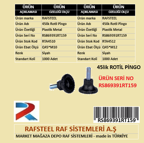 PLASTİK 45lik ROTİL PİNGO RAFSTEEL RS869391RT159