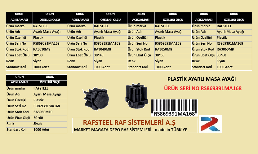 PLASTİK AYARLI MASA AYAĞI RAFSTEEL RS869391MA168