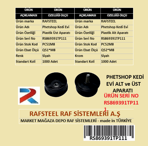 Rafsteel RS869391RT111 Plastik Petshop Kedi Evi Aparatı, kedi evi ve kedi oyun alanlarının kurulumunda kullanılan dayanıklı bağlantı ve sabitleme parçasıdır. Plastik yapısı sayesinde hafif, sağlam ve paslanmaya karşı dayanıklıdır. Modüler kedi evlerinin güvenli şekilde birleştirilmesini ve sabitlenmesini sağlar.