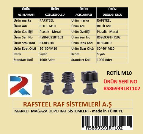 PLASTİK ROTİL M10 RAFSTEEL RS869391RT102