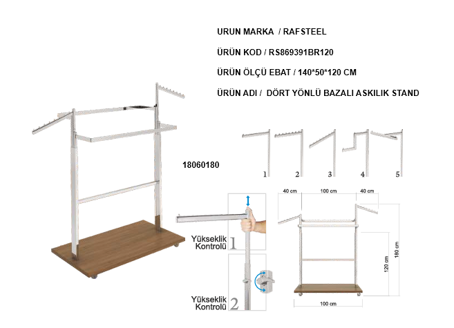 RONDO BAZALI DÖRT YÖNLÜ ASKILIK STAND RAFSTEEL RS869391ERA120