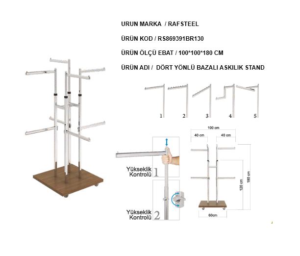 RONDO BAZALI DÖRT YÖNLÜ ASKILIK BAZALI STAND RAFSTEEL RS869391ERA130