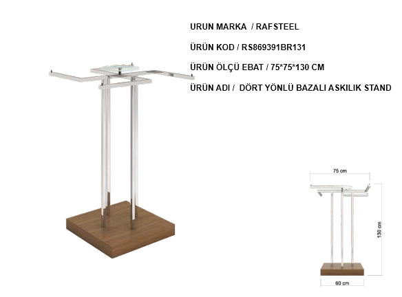 Dört yönlü askı tasarımı sayesinde mağaza içinde daha fazla ürünün aynı stand üzerinde sergilenmesine imkân tanır. Bu sayede hem alan tasarrufu sağlanır hem de müşterilerin ürünleri her açıdan rahatça incelemesi mümkün olur. Sağlam metal profil gövdesi ve dayanıklı tabanı sayesinde dengeli ve güvenli bir kullanım sunar.