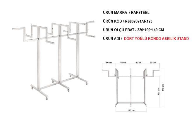 RONDO DÖRT YÖNLÜ ASKILIK STAND RAFSTEEL RS869391ERA123