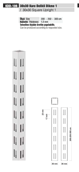Tekstil Bujiteri Mağaza Dekorasyon / RAFSTEEL RS12007KDD106 SQUARE UPRIGHT Beyaz Kare Delikli Dikme 1 30×30