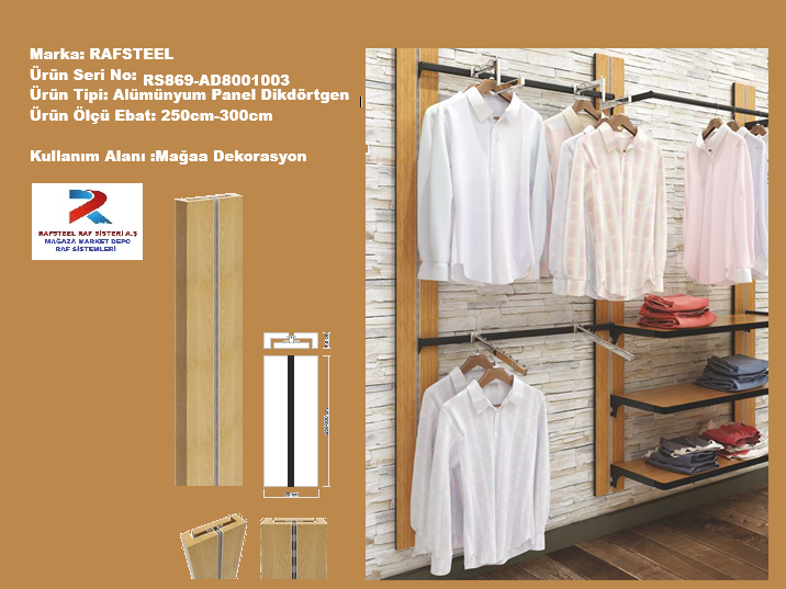 TEKSTİL BUJİTERİ MAĞAZA PARÇASI / RAFSTEEL RS12024AP02 Dikdörtgen Ahşap Alüminyum Panel