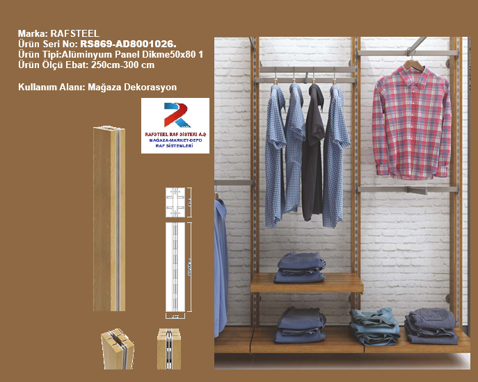 TEKSTİL BUJİTERİ MAĞAZA PARÇASI /RAFSTEEL RS12030APA010 Ahşap Dikdörtgen Alüminyum Panel 1