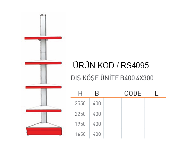 RAF ÜNİTE ADI: RAFSTEEL MARKET DIŞ KÖŞE ÜNİTESİ / Qutside Corner Unit