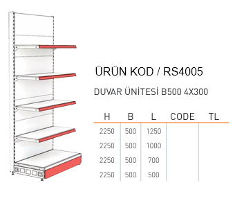 Market Raf Sistemi / RAFSTEEL RS4005-2250B500 WALL UNIT Duvar Ünitesi